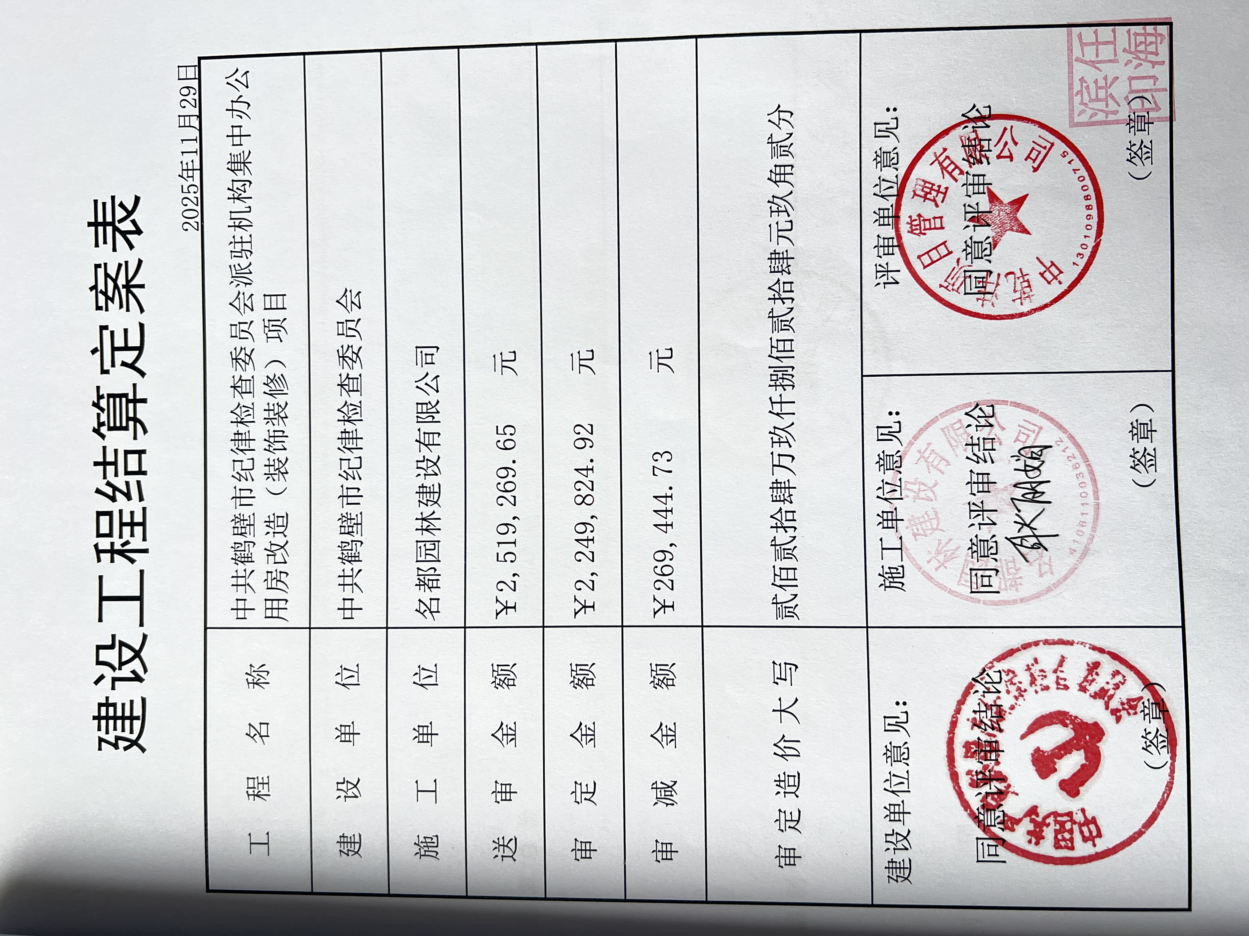 中共鹤壁市纪律检查委员会派驻机构集中办公用房改造(装饰装修)项目-合同公告